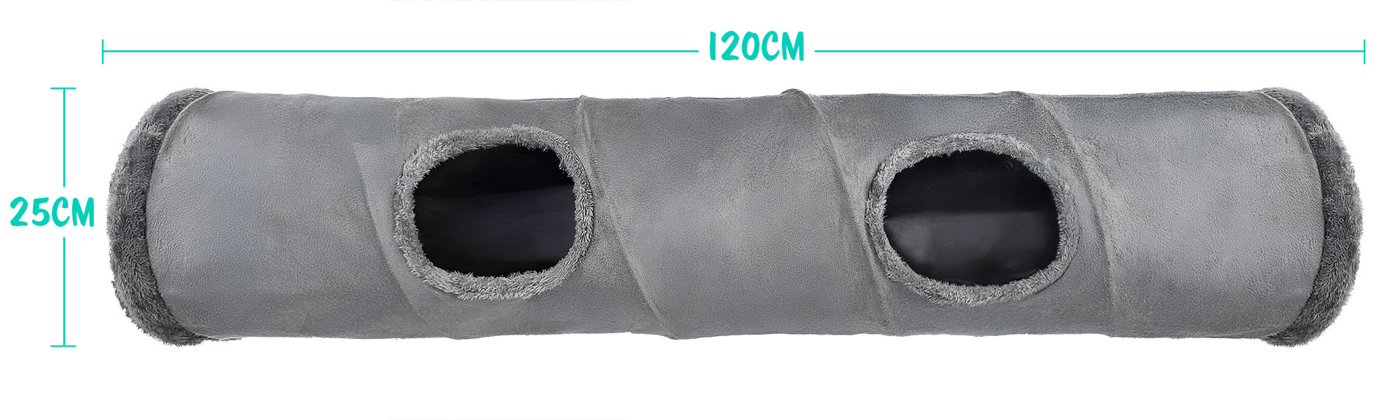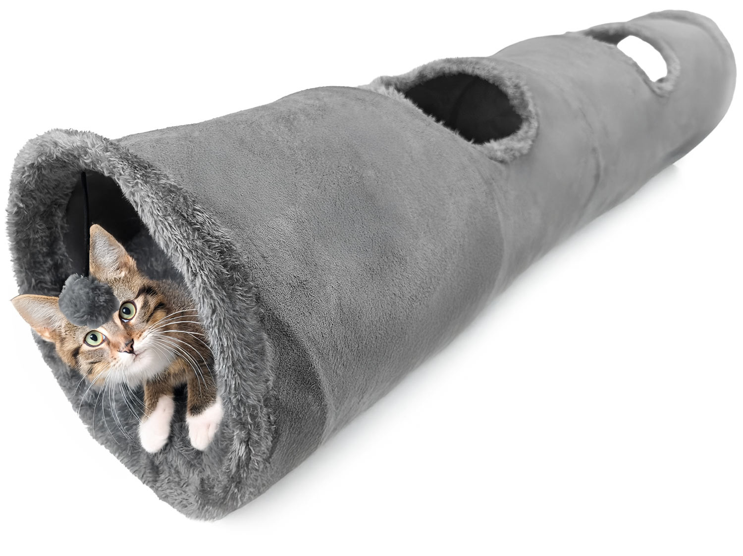 Pokryty mięciutkim pluszem, z szeleszczącym wnętrzem i ukrytą pluszową piłeczką, ten tunel stanie się nieodłącznym elementem kociego dnia – zarówno do zabawy, jak i relaksu.