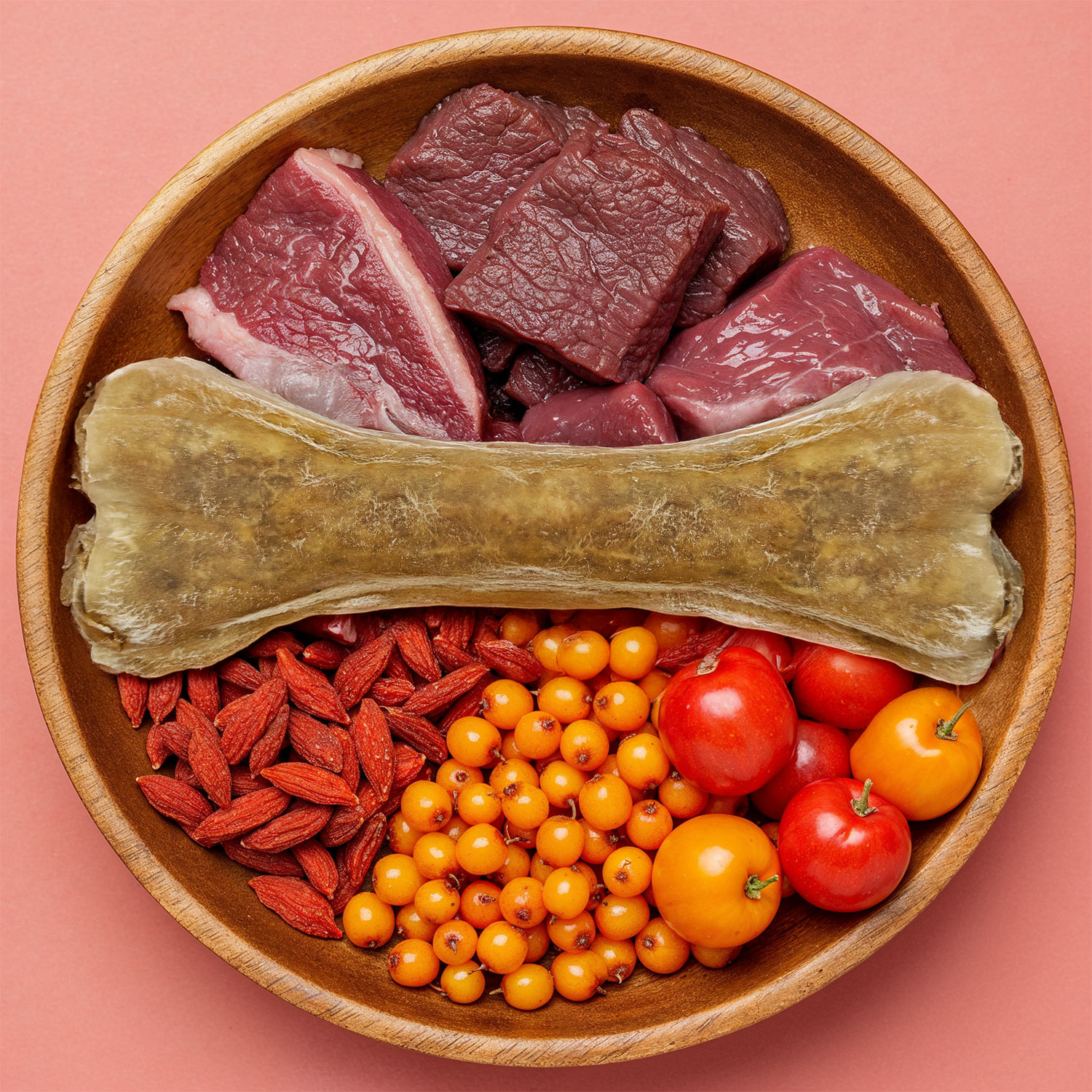 - Funkcyjna kość z mięsem z bażanta – lekkostrawnego, szlachetnego źródła białka, które wspiera budowę i regenerację mięśni, dodając energii aktywnym i starszym psom