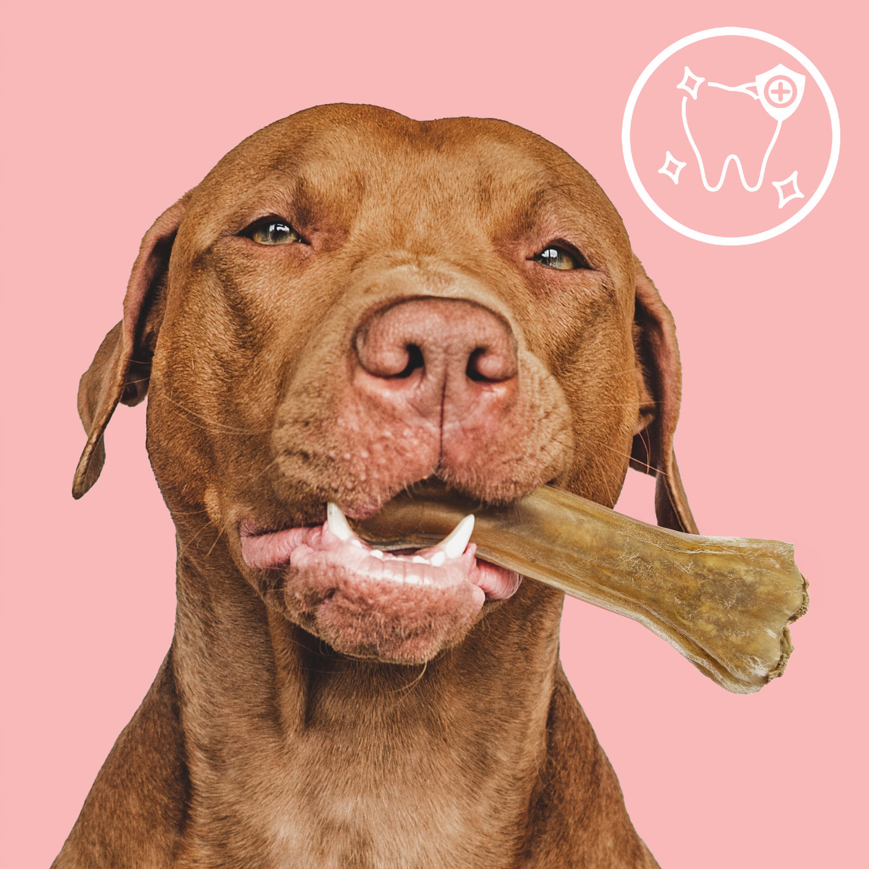 Skóra wołowa działa jak naturalna szczoteczka – zaspokaja potrzebę gryzienia i dba o higienę jamy ustnej.